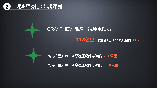 CR-V 銳·混動e+城市工況和高速工況純電續(xù)航里程均長于兩個對標(biāo)車型。